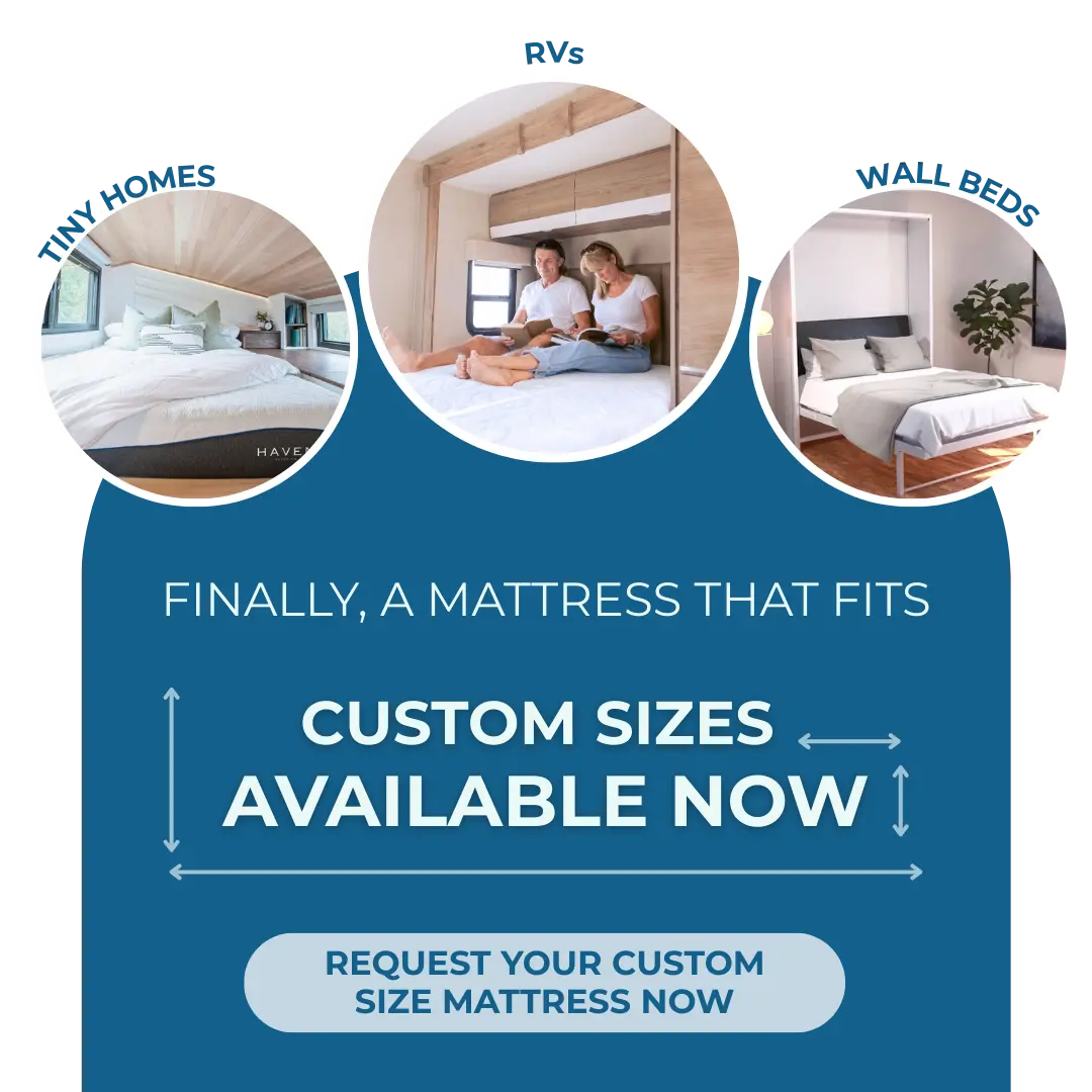 Built for compact living, Haven’s tiny home mattresses maximize comfort in minimal spaces. Available in standard and custom sizes, each mattress is handcrafted in Canada to fit lofted beds, built-ins, and unique layouts without compromising support or quality.